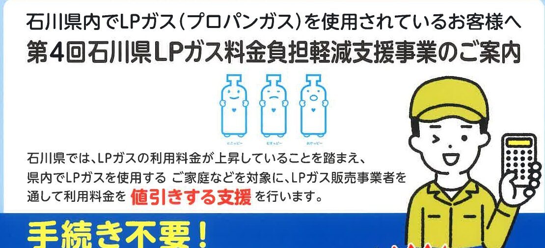お知らせこの度、石川県が実施する「石川県LPガス料金負担軽減支援事業」により