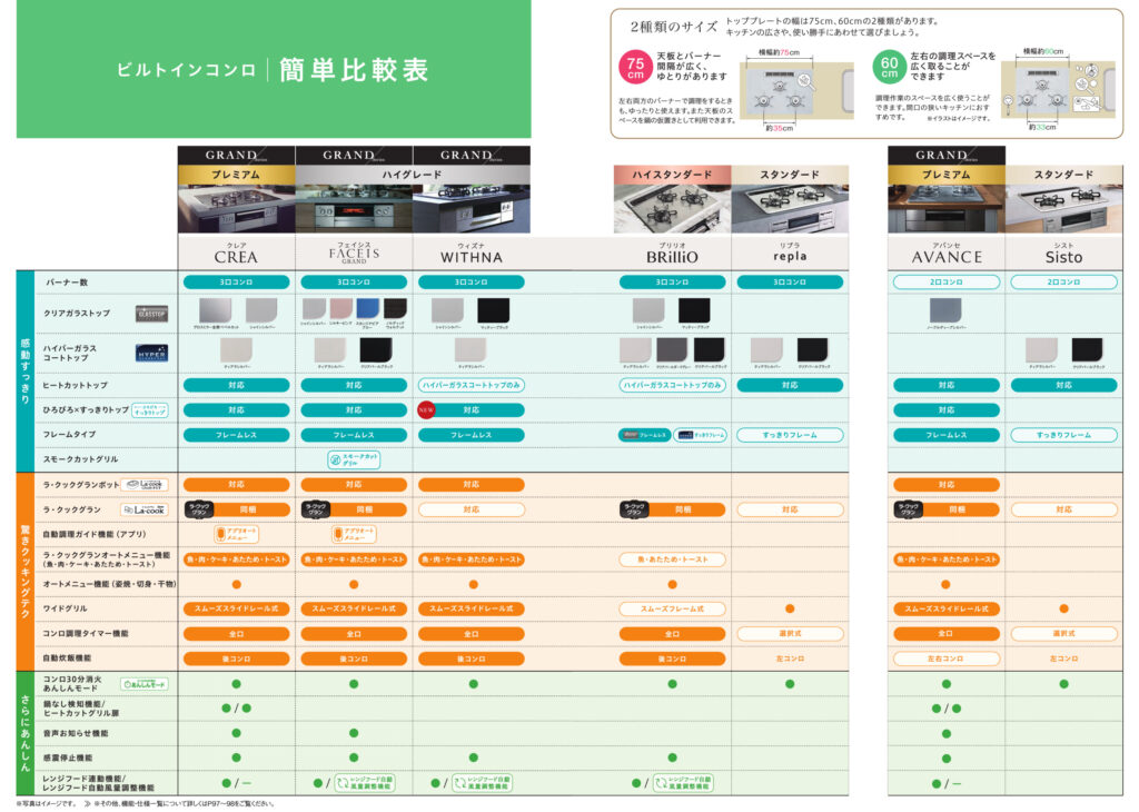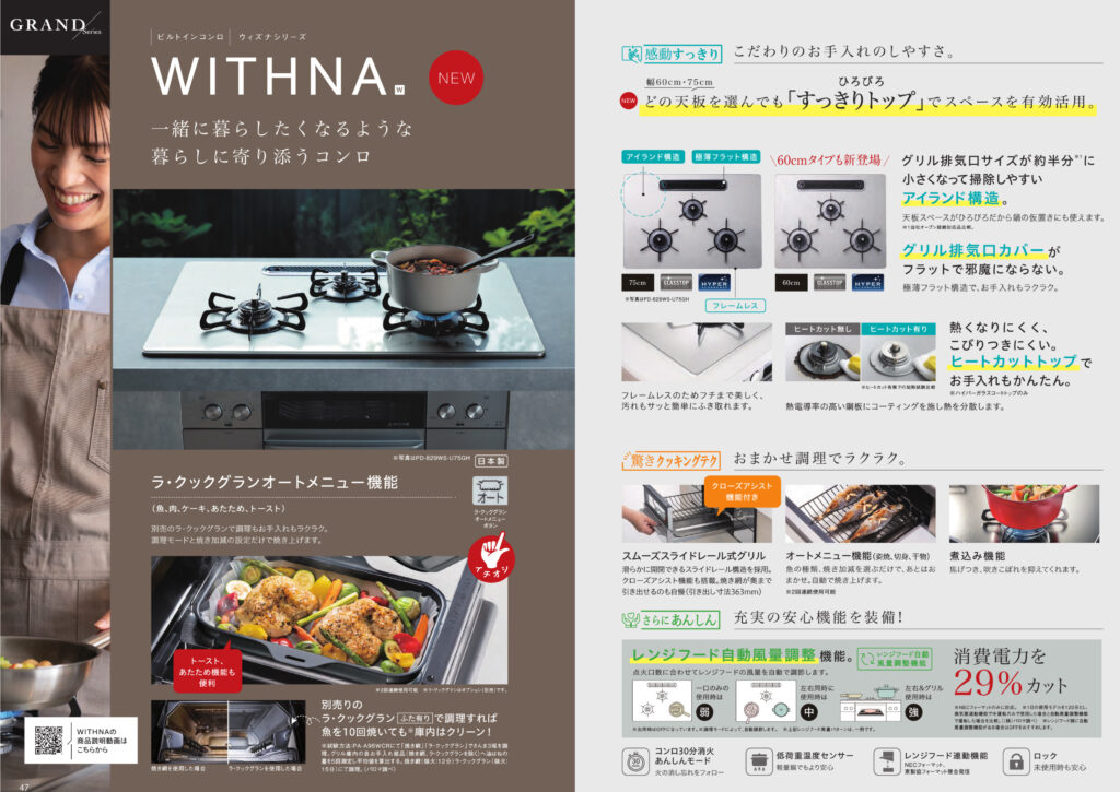 今回はパロマの「WITHNA」というシリーズのビルトインコンロを納品させて頂きました。ビルトインコンロの比較表(2025年9月パロマカタログ抜粋)を参考にしてみて下さい!